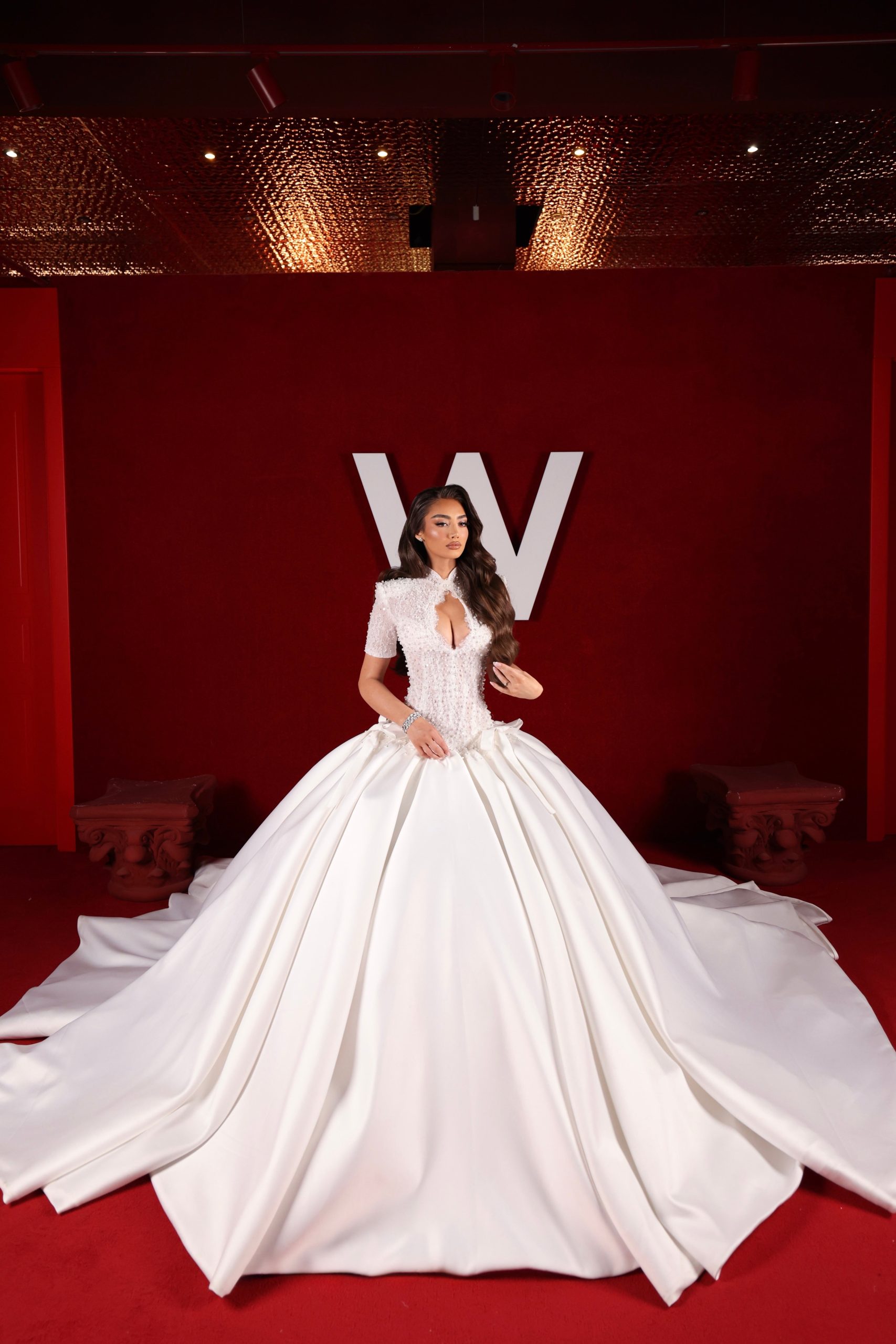 - Fully embellished lace with pearl detailing